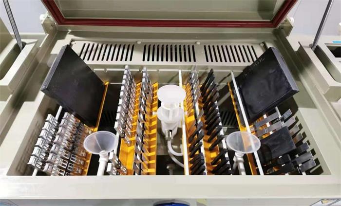 6、鹽霧試驗階段采用底部水槽蒸汽加熱方式,升溫速度快減少待機時間,當溫度到達時,自動切換恒溫狀態(tài),溫度精確,耗電量少,鈦合金制發(fā)熱管,耐酸堿腐蝕,超長使用壽命。