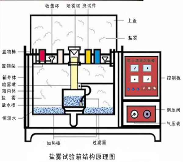 鹽霧腐蝕試驗箱為人工氣候環(huán)境“三防”(濕熱、鹽霧、霉菌)試驗設(shè)備之一,是研究機械、國防工業(yè)、輕工電子、儀表等行業(yè)各種環(huán)境適應(yīng)性和可靠性的一種重要試驗設(shè)備。該鹽霧腐蝕試驗箱可做中性鹽霧腐蝕試驗(NSS),同時也可以做醋酸鹽霧腐蝕試驗(ASS)和銅加速乙酸鹽霧腐蝕試驗(CASS)。鹽水噴霧試驗主要針對各種材質(zhì)之表面經(jīng)涂料、電鍍、陽極處理、防銹油等防腐蝕處理后,測試產(chǎn)品的耐腐蝕能力。